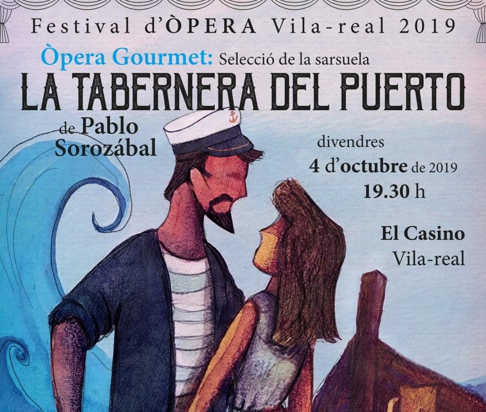 El I Festival d'Òpera de Vila-real 2019 continua amb la seua programació per a fer arribar aquest gènere musical al gran públic. En aquesta ocasió, de la mà de la sarsuela. Divendres que ve, 4 d'octubre, a les 19.30 hores, arriba al Casino de Vila-real la selecció de la sarsuela ‘La tabernera del puerto’, de Pablo Sorozábal, un concert dinàmic amb els moments més emblemàtics, en format ‘Òpera Gurmet’ Amb aquesta versió reduïda, el festival aproparà el món de l'òpera i la sarsuela d'una manera distesa i entretinguda a tots els públics.
