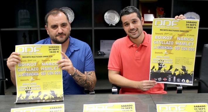 El concejal Asensio Blaya ha informado esta tarde en una rueda de junto al promotor local del evento, José Mañez de Ocultas Producciones, que "Onda acogerá por primera vez este festival que cosechó grandes éxitos en Betxí el verano pasado". En esta ocasión, importantes grupos como Boikot, Narco, Hamlet, Def Con Dos, Gatillazo o La Desbandada, actuarán en dos grandes escenarios en el Recinto Multiusos del municipio. A partir de las 20.00 horas, en la zona exterior, arrancarán las actuaciones de música electrónica en el tercer escenario. En el de Máxima FM actuarán dj Brian Cross, el grupo madrileño Gomad!&Monster, y Eyes Of Providence, Stile, así como DJRV Music.