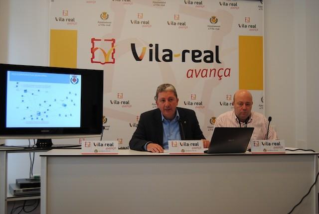 El concejal de Hacienda y de Nuevas Tecnologías, Javier Serralvo, acompañado del responsable de departamento municipal de Telecomunicaciones, José Hidalgo, ha explicado esta mañana las consecuencias económicas de la instalación de 63 kilómetros de fibra óptica que han permitido la conexión de 28 centros y servicios municipales en la ciudad.