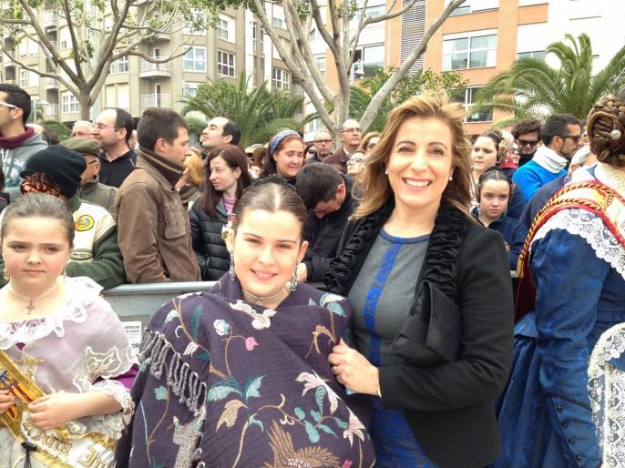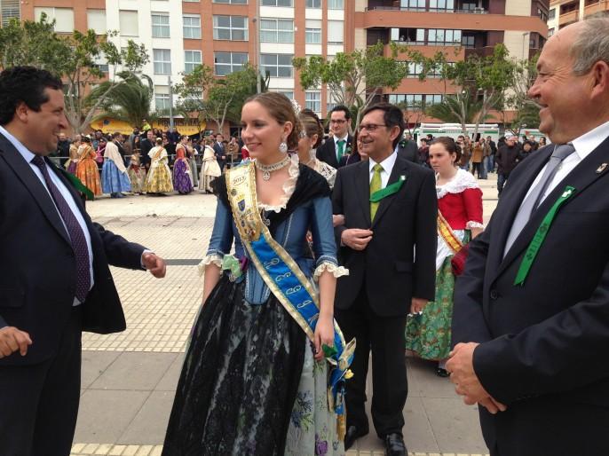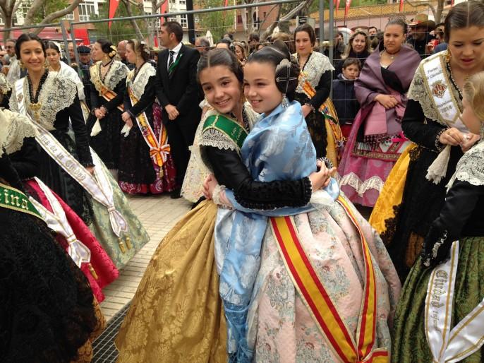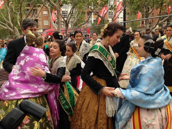 En un momento reinas de Castellón y Falleras se sumieron en abrazos, comentarios y risas. Buena relación entre los festeros de ambas ciudades, con la ausencia de las Belleas del Foc de Alicante, que también gozan de la admiración de los castellonenses.