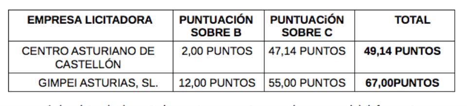 El canon mínimo estaba establecido en 3.000 euros. Se presentaron dos empresas: Centro Asturiano de Castellón con una oferta de 3.000 euros, y Gimpei Asturias SL, con una propuesta de 3.500 euros. En este caso, Gimpei Asturias SL superó a Centro Asturiano tanto en propuesta económica como en prestaciones técnicas y se llevó la adjudicación. El Mesón de temática asturiana continuará en la plaza Tetuán