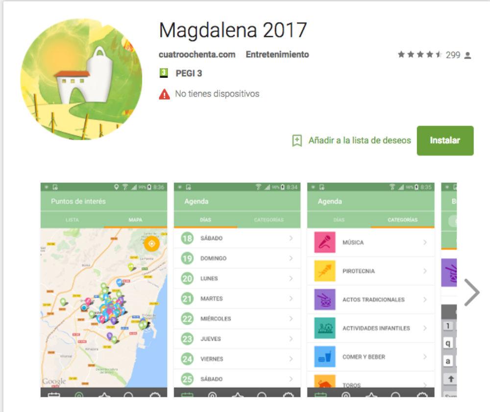 La aplicación oficial: ‘Magdalena2017’, no se visualiza en el ordenador con el cartel oficial, sino con una recreación miniaturizada del cartel. Por lo que cuando los ciudadanos buscan, la tendencia natural es la de bajarse la otra aplicación.