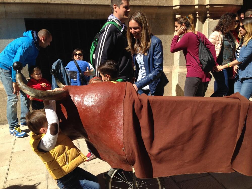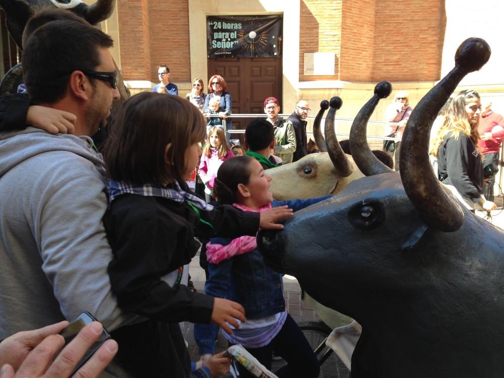 Y como no, los toros. La calle mayor acogió un encierro infantil en el que los más pequeños con sus familias se concentraron para correr delante de los mecanismos con cabeza de toro, que se movían entre el público y casi mugían como los mismos animales.