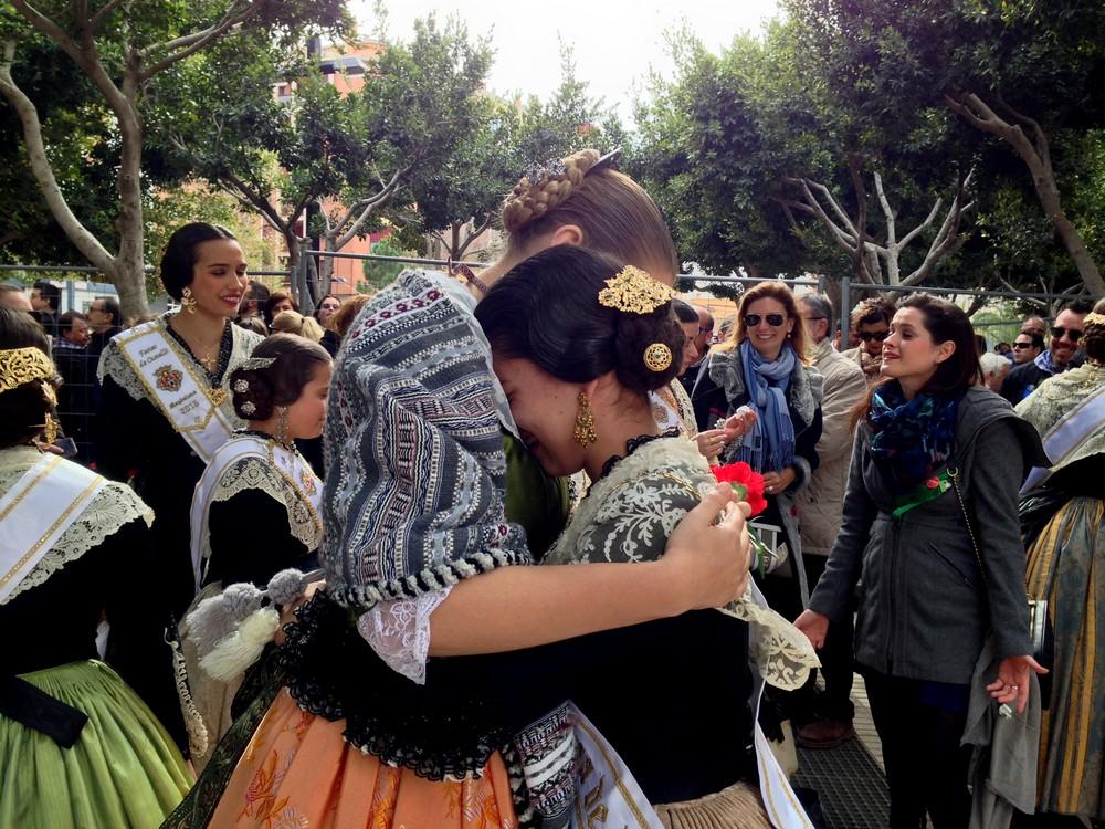 Fueron momentos bonitos, emotivos. Damas abrazadas a otras damas, dejando un reguero de lágrimas… Sara Usó se fundía en un abrazo con el presidente de la Junta de Fiests, Juanvi Bellido; Carolina Tárrega tomando las manos de sus damas e