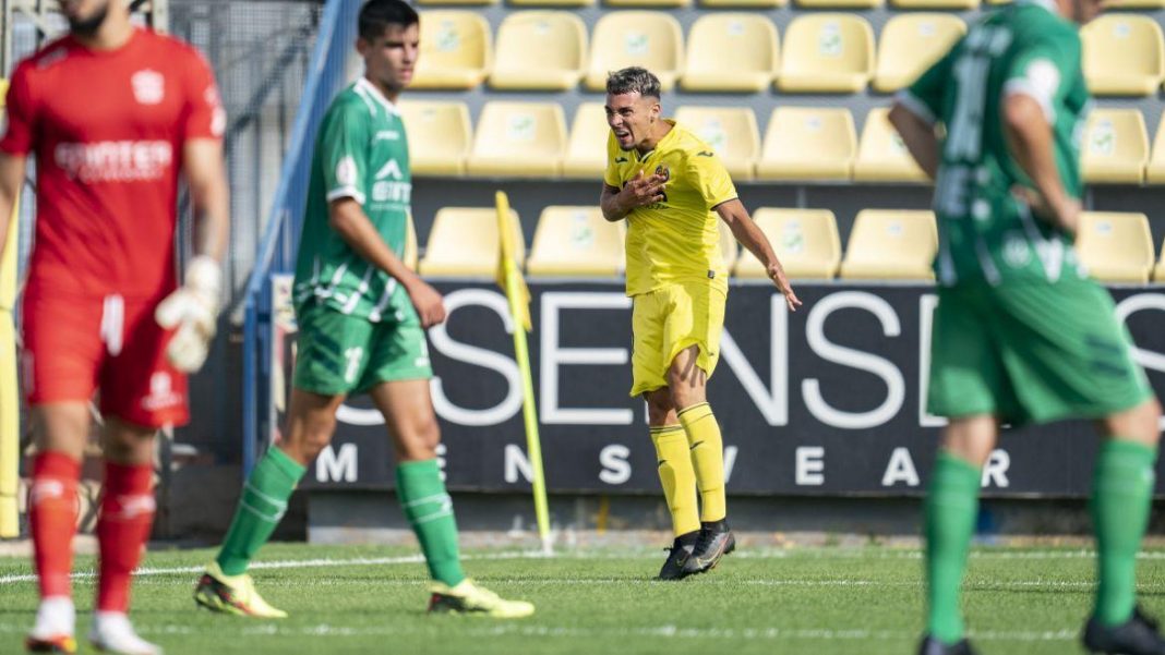 El filial amarillo formó de inicio con Diego Fuoli, en la portería; Migue Leal, José Castaño, Ramón Bueno y Goyo Medina, en la defensa; Ahn June, Sergio Lozano, Fran Álvarez y Juan Agüero, en el centro del campo, y delante dos chavales que se hartaron de meter goles la temporada pasada con el juvenil del Villarreal (campeón de Liga y Copa del Rey), como es el caso del roteño Fer Niño y el canario Juan Carlos Arana.