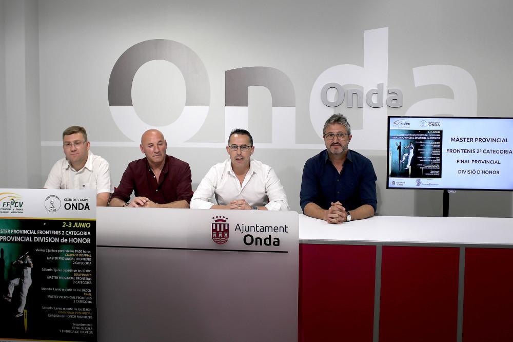 El regidor de l'àrea d'esports de l'Ajuntament d'Onda, Francisco Chalmeta, ha presentat aquest matí la programació de la final del Màster Provincial de Frontenis de 2ª categoria, que inclou la final provincial de la Divisió d'Honor. A més del regidor, a la presentació han acudit el responsable de l'àrea de Tresoreria i Comptable de la Federació de la província de Castelló, Enrique Martí; acompanyat d'Eduardo Pérez, directiu de la Federació i responsable de Competicions Comarcals; així com José Hervás, President del 'Club de Campo' d'Onda.