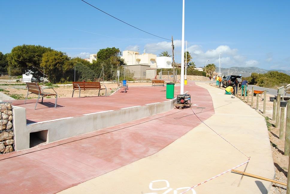 També s'han instal·lat pivots de fusta -seguint amb l'estètica de la franja litoral de Alcossebre- que separen el carril de vianants de la zona transitable pels vehicles
