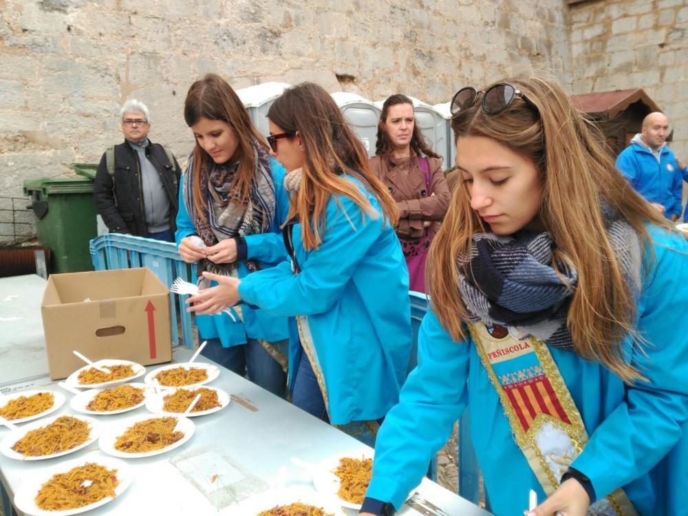 Peñíscola cierra las Fiestas de Invierno con una fideuà popular durante la tregua que la lluvia ha dado a los festejos en este fin de semana. Tras dos noches de celebración de madrugada con encierro de vaquillas nocturno incluido, la programación ha continuado a lo largo del domingo entre chubascos intermitentes que han permitido repartir alrededor de 500 raciones de fideuà a 1 euro, a beneficio de la Asociación Local en lucha Contra el Cáncer.