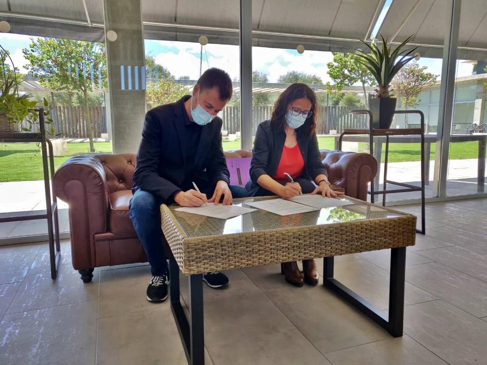 El alcalde, Guillem Alsina, y la directora general de L’Onada Serveis, Cinta Pascual, han firmado el acta de recepción de esta nueva residencia de mayores situada en la avenida Gil de Atrocillo, frente el IES Leopoldo Querol.