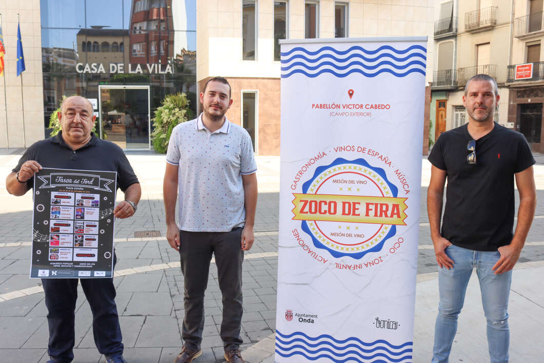 El concejal de Fiestas y Tradiciones, Sergio Puig, ha dado a conocer ambos espacios gastronómicos para Fira d'Onda 2023, acompañado de Pascual Bonache y Rafa Palanques organizadores del Mesón del Vino y la Tasca del Tord, respectivamente. Puig ha agradecido a ambos organizadores ondenses por su contribución a la Fira y ha destacado la importancia de estos dos espacios gastronómicos en la semana de fiestas. "Estos espacios prometen ofrecer una experiencia única que combina la mejor gastronomía con música en vivo, proporcionando a ondenses y visitantes una oportunidad única para disfrutar de Fira d'Onda", ha declarado el edil.