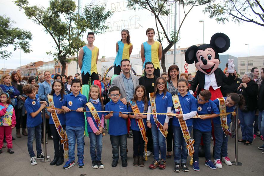 211016 Inauguración Feria atracciones Fira Onda, concejal de fiestas Asensio Blaya con acompañante reina infantil12.00 h       Volteig de campanes, tir de tronadors i obertura del Casal de la Tapa a la plaça d’Espanya.