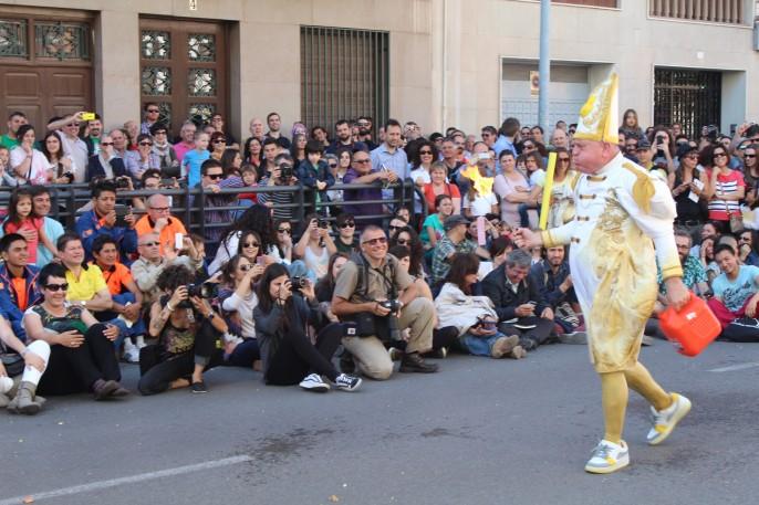 FitCarrer Vila-real está siendo un éxito y muchos son los vecinos y habitantes de las proximidades que se han desplazado a Vila-real para participar en esta singular fiesta del teatro. Esta tarde sin ir más lejos, el italiano Leo Bassi ha deleitado a los asistentes con su espectáculo 'Patocracia' en la avenida Francesc Tàrrega. Cabe resaltar que este ha sido uno de los montajes que más público ha reunido en las calles de la Vila. Un montaje en el cual se ha podido ver al famoso cómico italiano presentando su 'iglesia patolica' que se basa en el humor el espíritu crítico y el inconformismo como señas de identidad.