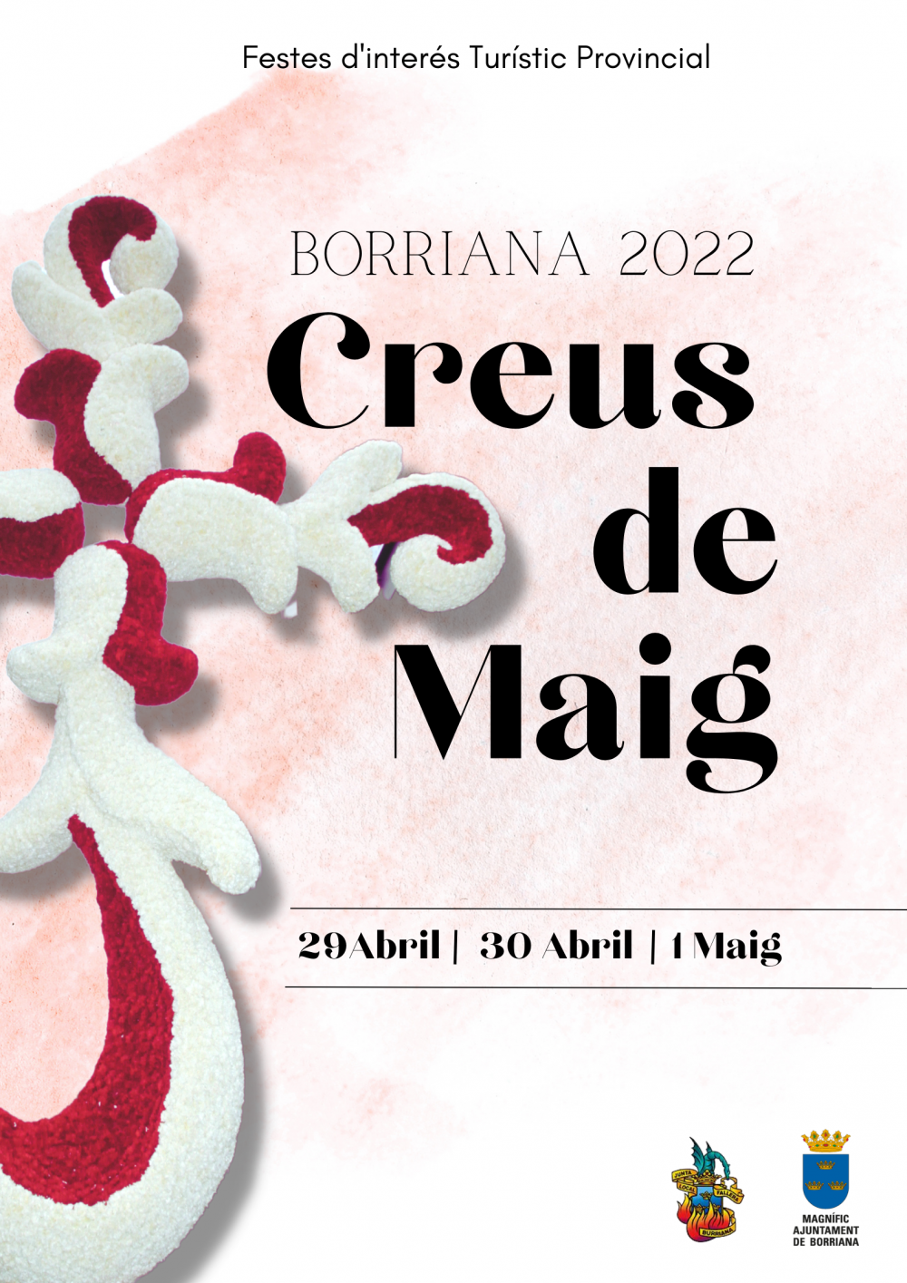 Borriana es transformarà el pròxim cap de setmana en un gegantesc jardí adornat per l'art efímer de les Creus de Maig que elaboren cadascuna de les comissions falleres amb flors naturals. Una mar de monuments i conjunts florals que envaeixen, durant el primer cap de setmana de maig, els carrers de la localitat d'un preciós colorit i agradable aroma floral en què el clavell és el gran protagonista.