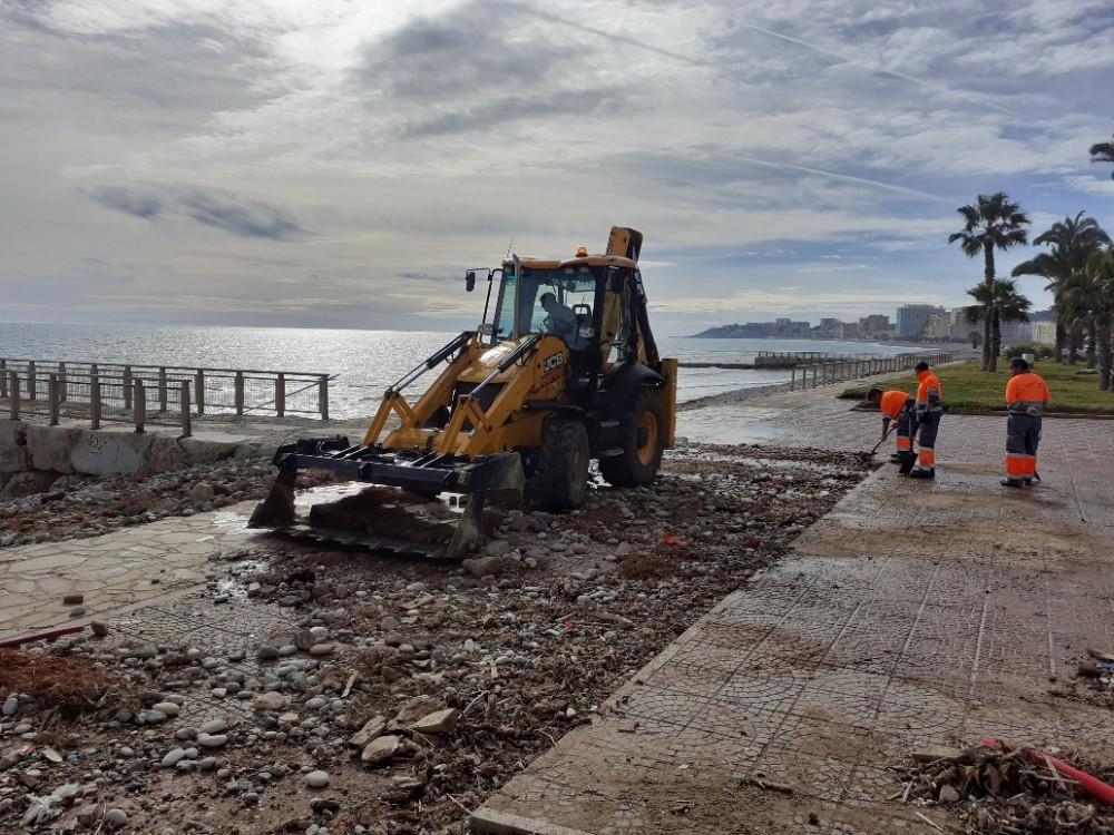 En Burriana se ha destinado un pequeño equipo con una máquina y, en cuanto a Benicàssim, entre otros medios, la firma ha destinado a reparar los daños del temporal dos camiones brigada con operarios, una retroexcavadora mixta, una pala frontal mini, dos giratorias de diferentes dimensiones, dos barredoras y un equipo especial e peones de limpieza, que se ha encargado de retirar los arrastres de ramas, hojas, arena y suciedad de las calles, además de intensificar la limpieza de imbornales y la recogida de voluminosos para evitar posibles obturaciones.