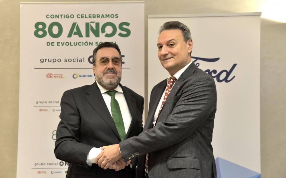 El presidente de Ford España, Jesús Alonso, y el presidente del Grupo Social ONCE, Miguel Carballeda, han renovado el Convenio Inserta que suscribieron por vez primera en el año 1999 y que, en esta ocasión, supondrá la contratación de 40 personas con discapacidad durante los próximos cuatro años, llegando así a las 1844 contrataciones desde el inicio de la colaboración.