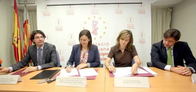 La consellera de Educación, María José Català, ha ha firmado hoy un convenio con la Federación Valenciana de Municipios y Provincias (FVMP) para impulsar la formación profesional dual en los ayuntamientos de la Comunitat Valenciana.