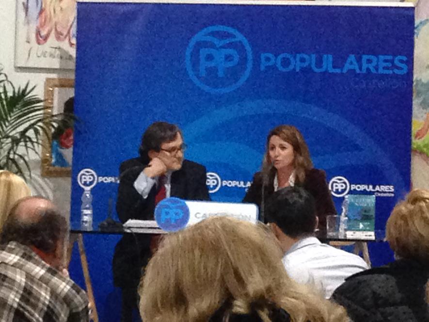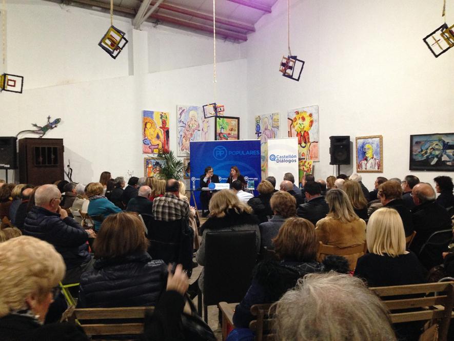 Su conferencia, que se impartió en el mismo lugar donde hace menos de un mes Pedro Sánchez pidió su apoyo a los socialistas divergentes; se centró sobre el tema de los populismos. Una conferencia que se incluía dentro del ciclo Diálogos, con el que el Grupo Popular, pretende activar a sus bases en la capital de la Plana.