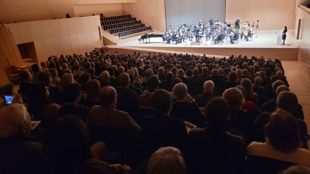 La concejala de Cultura del Ayuntamiento de Castellón, María España, ha asistido al concierto extraordinario de Francisco Signes al frente de la Banda Municipal de Castellón. Un concierto en el que también ha estado también presente la directora del Institut Valencià de Cultura en Castellón, Nuria Felip. Un Auditorio lleno hasta la bandera homenajeó al que fuera director de la formación musical desde 1983 a 2012, tras finalizar su etapa musical por su jubilación. Sin duda uno de los actos más esperados de la programación del centenario de la agrupación musical y en el que Signes ha repasado toda su trayectoria musical. A través de composiciones propias, alguna incluso de cuando contaba solo con 12 años, el músico castellonense ha viajado desde el pasodoble a la marcha mora, pasando por piezas dedicadas a su mujer y sus cuatro hijos. Un público puesto en pie ha despedido al director y compositor que no ha podido ocultar su emoción en su regreso a la banda.