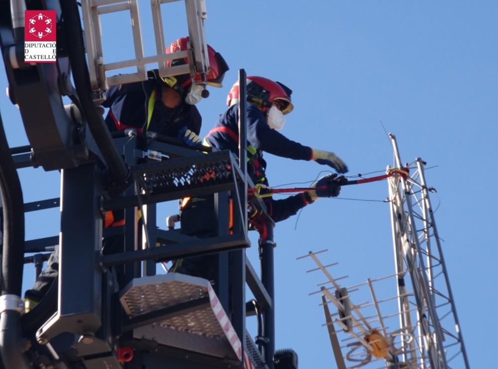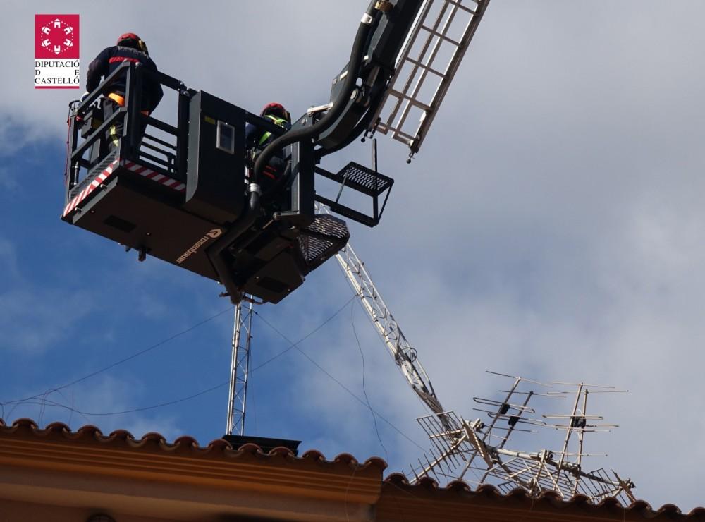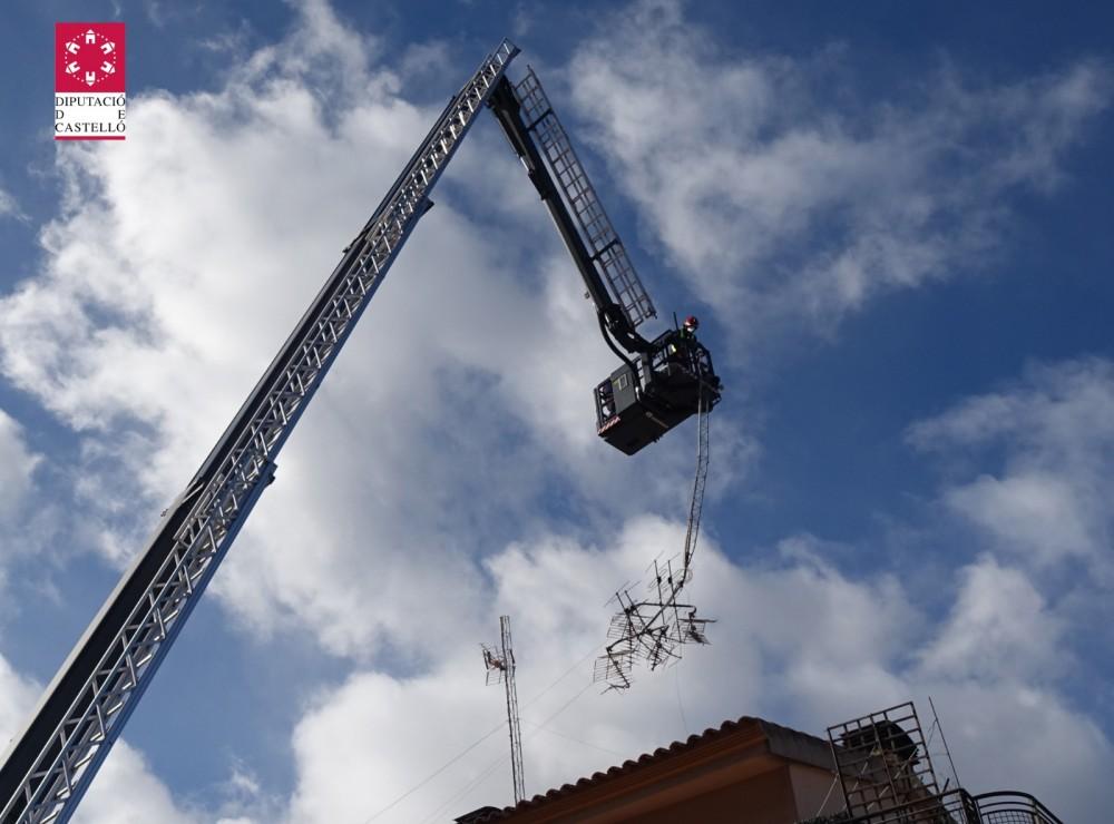 • Saneamiento de una cornisa en Oropesa del Mar, a cargo de los bomberos del Parque Plana Alta.