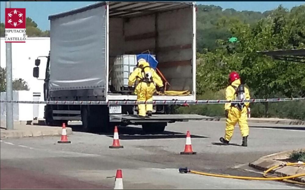 Fuga acido camion 140917Agentes del Parque de la Plana Alta del consorcio Provincial de Bomberos han intervenido este mediodía en el control de una fuga de ácido corrosivo de un camión.