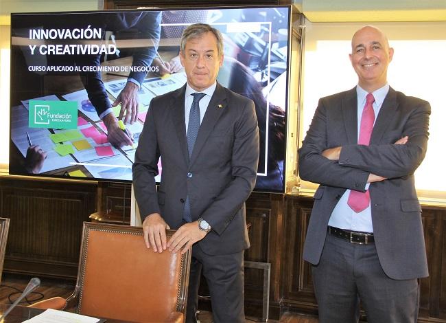 El presidente de la Fundación Eurocaja Rural, Javier López Martín, y el gerente de la misma, Vicente Muñoz Almagro, han presentado este mañana en Toledo el programa ‘Innovación y Creatividad’, un curso intensivo aplicado al crecimiento de negocios.