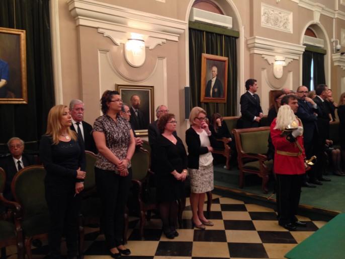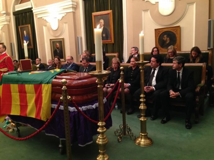 El Salón de Plenos se transformaba para decir adiós a Miquel Soler. En el centro, entre los bancos de los concejales, el féretro del concejal, adornado con la bandera de Castellón, con su verde ciudad, su vara de mando y su medalla de concejal. A un lado, el equipo de Gobierno, compañeros de Corporación y ex compañeros de Corporación. Al otro, la familia.Funerosl Miquel Soler 2V14 (7)