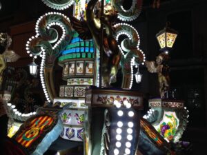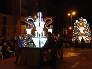 La evolución de las gaiatas durante los últimos 50 años, marca puntos muy interesantes a tener en cuenta. Las gaiatas son, sobre todo, monumentos de luz, y además son monumentos que, en actos como el Desfile de Gaiatas, deben poder circular por la ciudad sin perder esa luz.