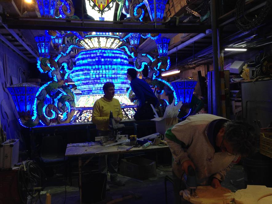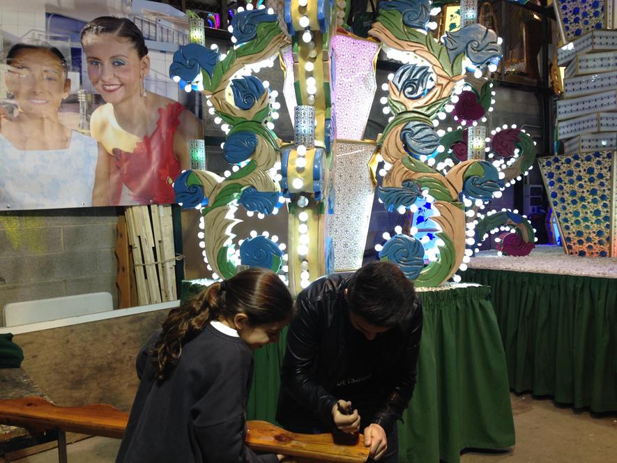 En el ‘mon de la festa’ de las gaiatas, se acabó hace más de un mes la cuenta atrás para disponerlo todo. Van a destajo, corriendo, trabajando todos los fines de semana desde hace meses; invirtiendo el poco tiempo libre para cortar maderas, pintar detalles, decorar la base, añadir luces y controlar las fases de luz.