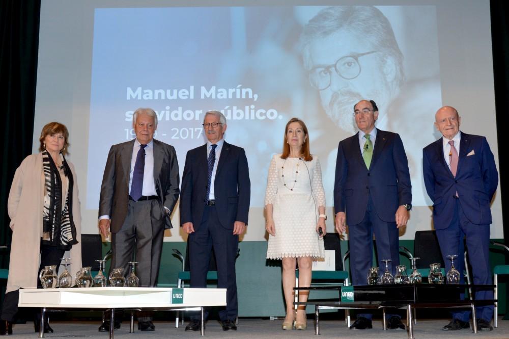 El citado homenaje, presidido por el rector de la UNED, Alejandro Tiana, ha contado, asimismo, con la participación de Felipe González, expresidente del Gobierno; Ana Pastor, presidenta del Congreso de los Diputados, y Abel Matutes, exministro y excomisario europeo.