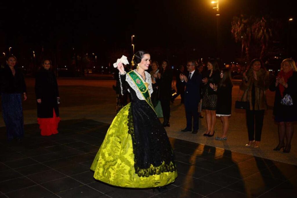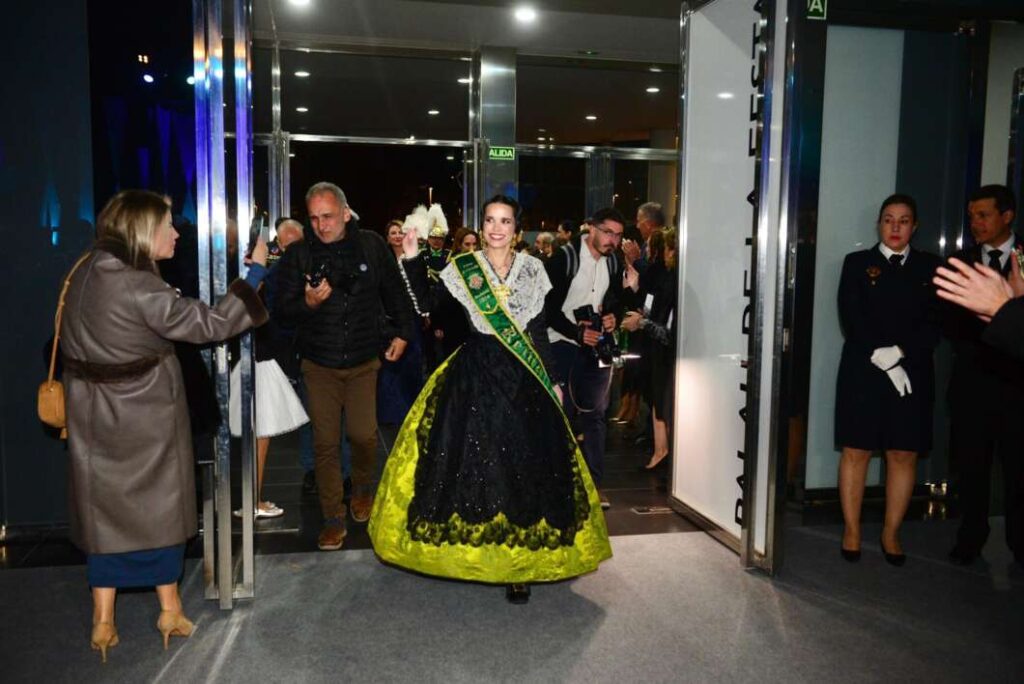 Llegó uno de los momentos culminantes de la noche: el acceso al escenario, escoltada por la Escuadra de Honor de la Policía Local de Castellón y acompañada por la música de Xarançaina, de la Reina de las Fiestas de Castellón 2024, Lourdes Climent Moreno.