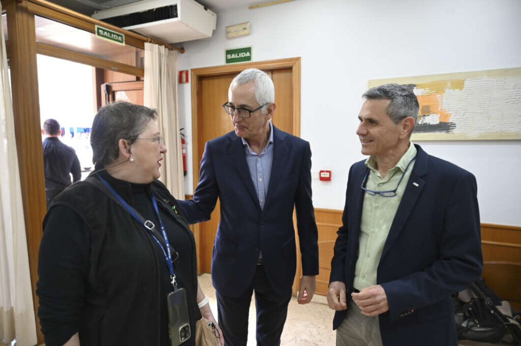 Tanto los representantes de la UJI como los del CEU también departieron amigablemente en el Hotel Doña Lola, donde el pintor Bolumar conversó con el presidente del Real Casino Antiguo de Castellón, en compañía del presidente de AdComunica, Adrián Beltrán, y los integrantes del Grupo de Teatro Visitants así como con los responsables de Metrónom.