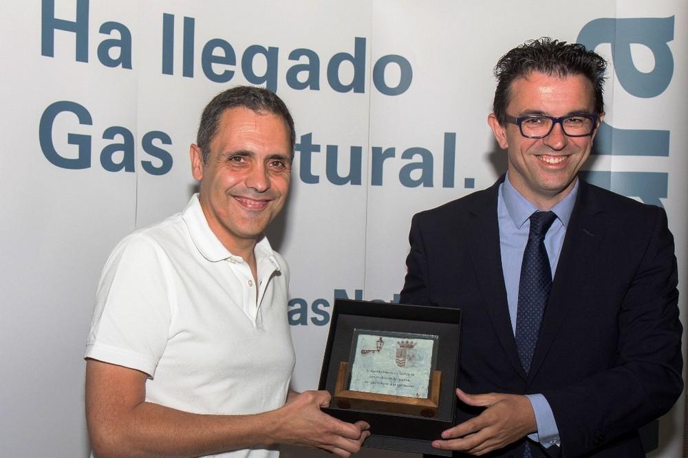 El alcalde en funciones de Soneja, Benjamín Escriche, y el delegado de Nuevas Poblaciones de Gas Natural Cegas, Rafael Botella, presentaron ante un centenar de vecinos el proyecto de gasificación que está ejecutando la compañía energética en la localidad y que permitirá que los primeros usuarios comiencen a recibir el suministro a finales del mes de julio.
