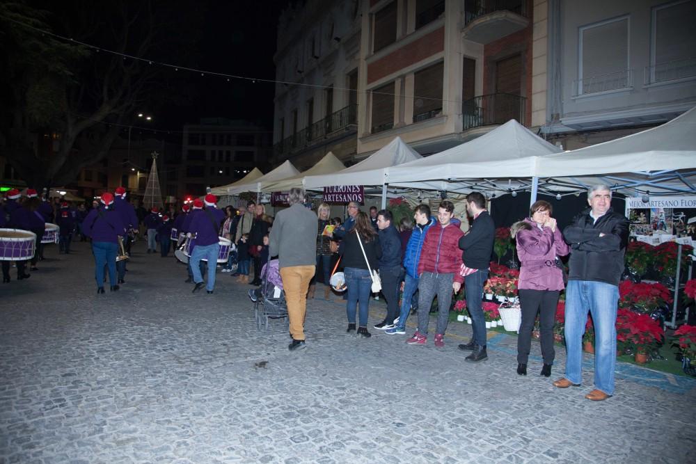 Ha sigut mitja hora abans, a les sis de la vesprada, quan l'Associació de Gegants i Cabuts de Borriana i l'Associació de Bombos i Tambors de la Santa Faç de Borriana s'han donat cita en la Plaça de la Mercè per a iniciar la cercavila prèvia a la inauguració oficial de la Fira de Nadal, que tal com ja va explicar durant la presentació la regidora del àrea, Maria Romero, “ha sigut l'opció que enguany hem cregut més interessant per a cridar l'atenció de la ciutadania, i fer que amb aqueixa cercavila prèvia la gent s'hi ha anat sumant fins a desembocar en una Plaça del Pla on ja estaven obertes les 36 casetes de comerços amb les quals enguany hem pogut comptar”.