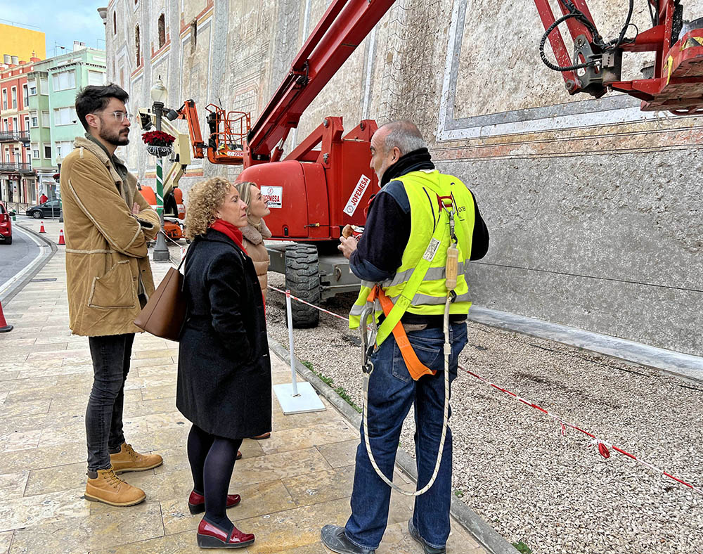 Contreras ha estado acompañada por el primer teniente de alcalde y concejal de Patrimonio, Marc Albella, y el técnico responsable de la restauración, Marcos Roda, que ha sido el encargado de detallar los trabajos que se realizan.