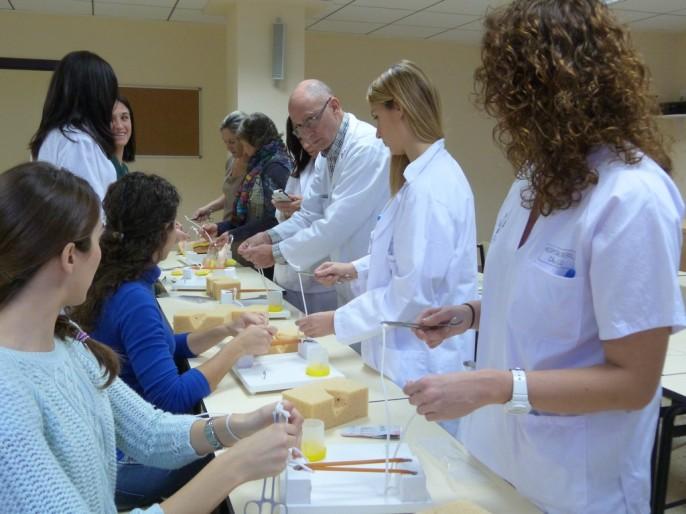 Además, trató también la clasificación de los distintos hilos de sutura con los que se trabaja en el área de paritorios, así como los tipos de agujas, el instrumental básico.