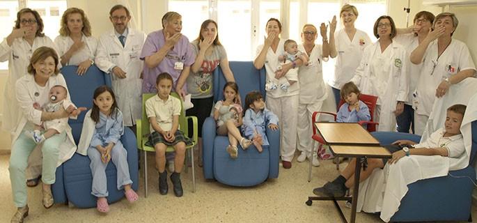 El acto central de la celebración de este día ha sido el lanzamiento de besos en el Hospital de Día del HGUCS, en el que han participado, tanto los niños y niñas que reciben tratamiento en este espacio, como los que se encuentran hospitalizados, además del gerente del Departament de Salut de Castelló, la Dirección de Enfermería y el personal de enfermería de Pediatría.