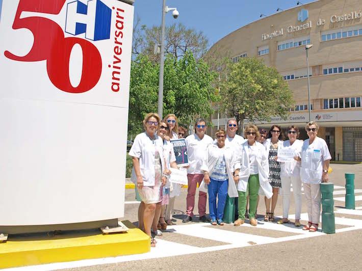 En el acto de visibilización del HGUCS han participado la directora médico del centro sanitario, Mª Jesús Juan, y el jefe del servicio de Oftalmología, Francisco Ramos, junto con personal del hospital castellonense.