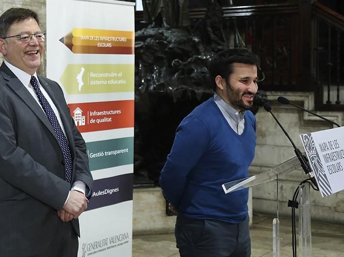 El President de la Generalitat, Ximo Puig, y el conseller de Educación, Vicent Marzà, han presentado el Mapa de las Infraestructuras Escolares de la Generalitat, que tiene como prioridad eliminar durante esta legislatura los barracones y además construir 124 centros educativos nuevos.