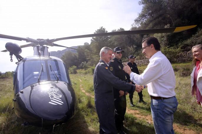 Previamente, Serafín Castellano también ha visitado la Fuente de la Drova en la localidad de Barx para hacer un reconocimiento de algunos medios de prevención y extinción de incendios como la brigada de emergencias de la Generalitat de Castelló de Rugat con autobomba, la unidad de prevención con motobomba de Villalonga, la Unidad Técnica y un helicóptero de coordinación de incendios. Además, un avión Air Tractor ha realizado una descarga en el Observatorio del Montdúver para mostrar cómo trabaja en caso de incendio.