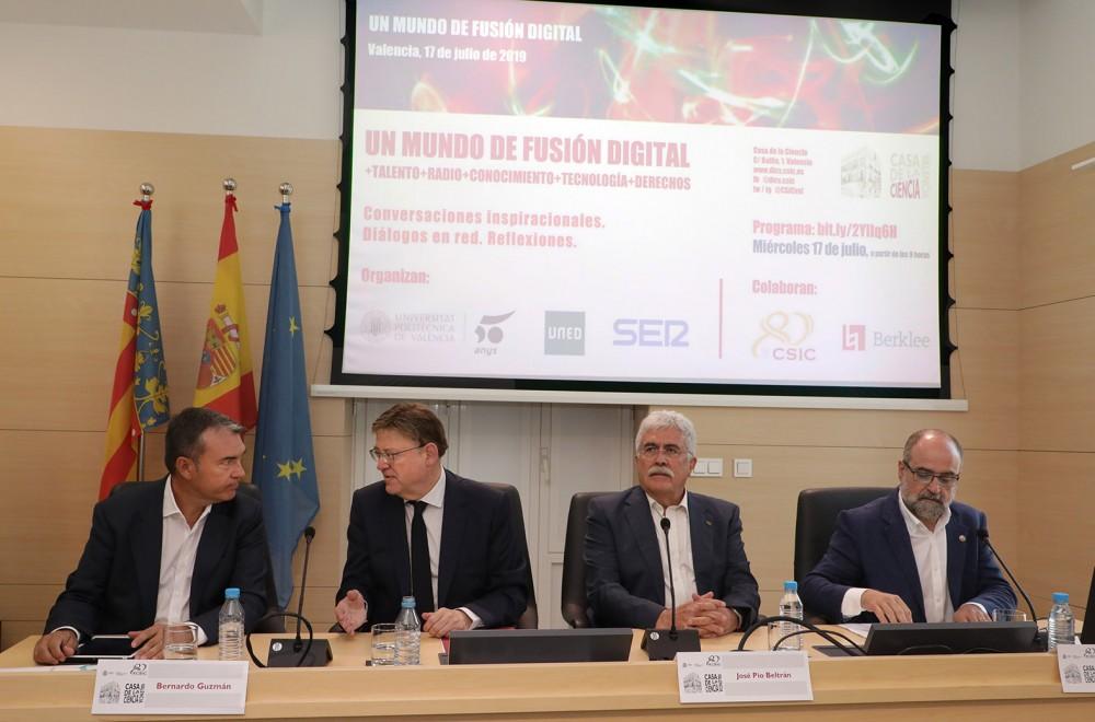El titular del Gobierno valenciano ha destacado el esfuerzo del Consell por acercar la revolución digital a toda la Comunitat con iniciativas como la creación de una Conselleria de Innovación, Universidades, Ciencia y Sociedad Digital y objetivos como la extensión de infraestructuras digitales a todo el territorio valenciano.