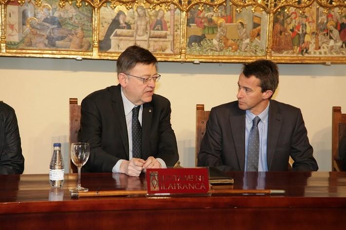 El President ha realizado una visita al ayuntamiento de Villafranca del Cid, donde ha firmado en el libro de honor. Allí, ha asegurado que este municipio representa los valores que han de contribuir al renacimiento de la Comunitat Valenciana, que son "coraje, trabajo y honradez". Además, ha asegurado que la Generalitat, en colaboración con los ayuntamientos, se compromete a mejorar la vida de los ciudadanos: "El objetivo es trabajo, justicia social y bienestar social".