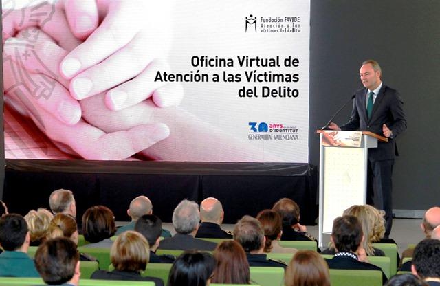 El President de la Generalitat, Alberto Fabra, ha presentado la primera Oficina Virtual de Atención a las Víctimas de Delito de España, "lo que vuelve a convertir a la Comunitat Valenciana en pionera en la atención a las víctimas de cualquier tipo de delito". Durante su intervención, ha recordado que la Comunitat Valenciana ya fue pionera en abrir, hace 30 años, la primera Oficina de Atención a las Víctimas del Delito (OAVD) y "hoy vuelve a serlo ofreciendo una Oficina Virtual".