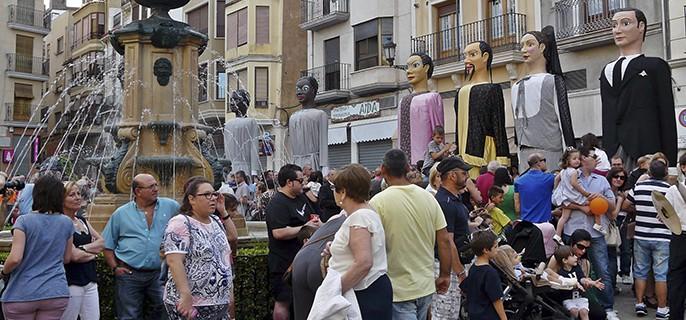 Un tropel de niños precede al séquito de cartón piedra. Delante, los cabezudos y al fondo, sobresalen las tres parejas de gigantes que representan a las razas humanas, todos ellos sin perder el compás que marcan los músicos de la sociedad musical segorbina que cierran el desfile.