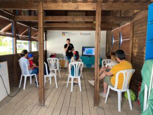 Dentro de la campaña hay tres actividades dinámicas programadas a lo largo del año que se irán repitiendo y que son: la gincana climática, el escape room: 20.000 leguas de vida submarina y el Concierto Rock and Planet; tres actividades dirigidas al público familiar y la primera de ellas, la gincana climática, se ha desarrollado esta mañana. En ella, los participantes han tenido que superar pruebas y resolver cuestiones relacionadas con el problema del cambio climático: la deforestación, la pérdida de biodiversidad, etc. Cada grupo participante se ha conectado mediante un móvil a una plataforma de juego la cual les ha guiado mediante videos y explicaciones para poder ir avanzando en cada estación de la gincana. En cada una de ellas se han tratado diferentes aspectos sobre el problema del cambio climático y se han planteado diferentes soluciones.