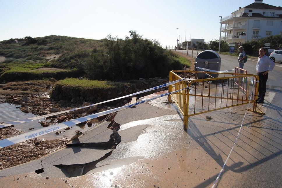 Los daños se centran sobre todo en infraestructuras junto al mar, como tramos de vías peatonales del Sendero Litoral que han desaparecido por completo junto al río San Miguel o en la playa del Cargador; también han quedado muy afectados tramos de pasarela de maderas y postes en el barranco de La Coloma, playa del Cargador y playa del Moro, así como duchas y mobiliario de playa. También ha quedado muy dañada la obra que se estaba realizando en la acera del campamento Jaume I. En cuanto a caminos y vías pecuarias, hay zonas junto a barrancos en las que la fuerza del agua se ha llevado por delante tramos enteros de caminos o vías pecuarias que han sufrido desprendimientos de piedras lo que impide el paso.