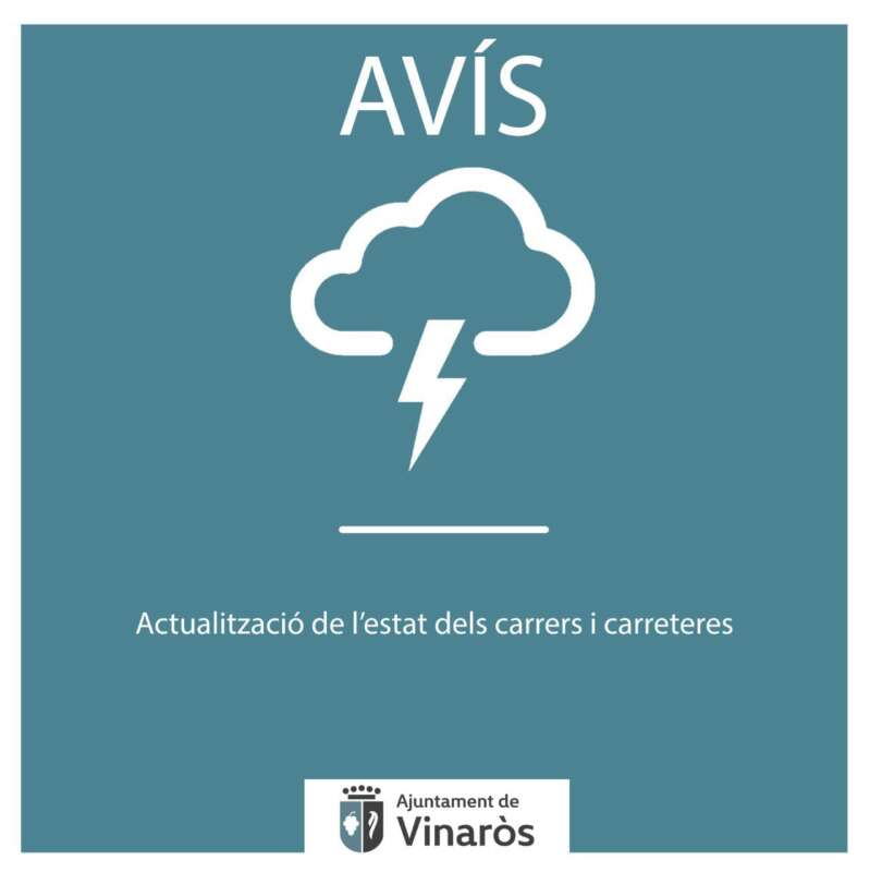 Avisos emitidos y carreteras cortadas en Vinarós (18:00 h)