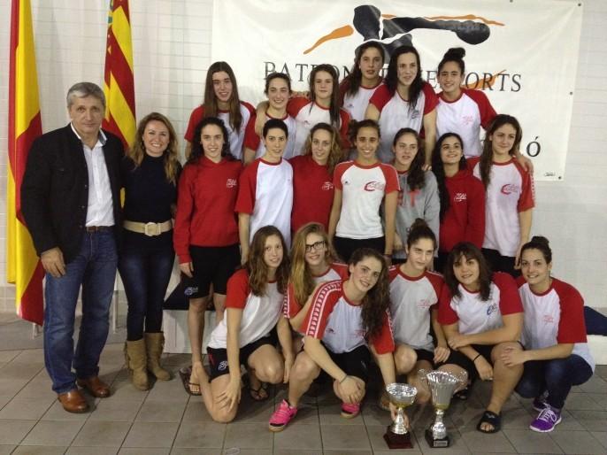 Buenas noticias para la natación de la provincia de Castellón. Las integrantes del Club Natación Castalia Castelló-Costa de Azahar se han proclamado este pasado fin de semana Campeonas de Invierno de la Comunidad Valenciana, en categoría Junior y Absoluta. Una competición que ha tenido lugar en la Piscina Olímpica Municipal, en la capital de la Plana. En la foto aparece también la concejala de Deportes, Begoña Carrasco, acompañada por el presidente de la Federación Valenciana de Natación, Juan Pedro Rodríguez.