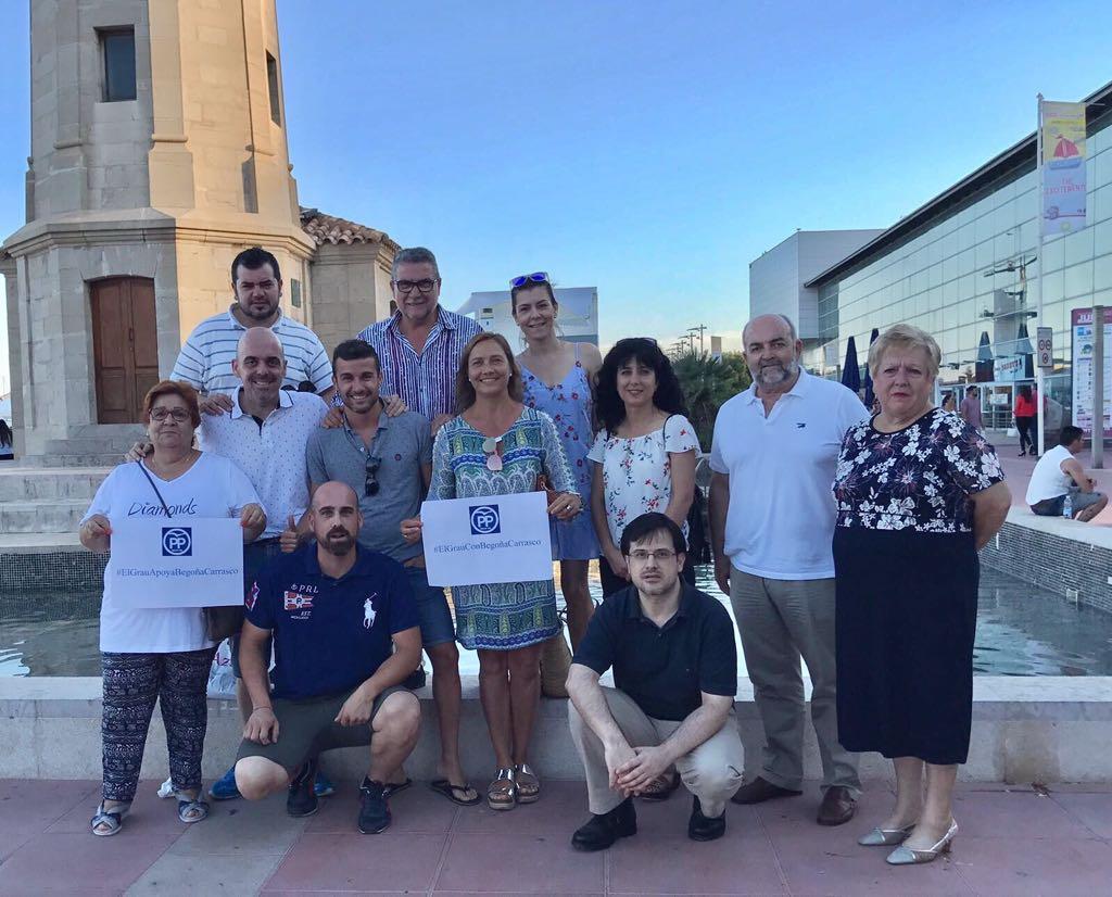 Los miembros de la Junta Local del Grao del Partido Popular de Castellón encabezados por su presidenta, Marta Gallén, han mostrado su apoyo a la candidatura de Begoña Carrasco para la Presidencia de la Junta Local firmando los avales de cara al Congreso que la formación celebrará el próximo 7 de julio a las 7 de la tarde en el Planetario del Grao de Castellón.