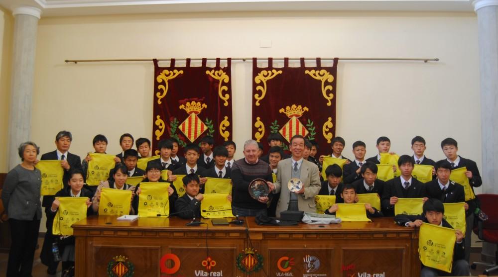 El tinent d’alcalde i regidor d'Esports i Salut, Javier Serralvo, ha rebut aquest matí, a la Casa dels Mundina, a un grup d'estudiants japonesos, de Segon de Batxillerat, de la localitat de Takamatsu, que han vingut a conéixer la ciutat de Vila-real en el seu viatge escolar, a més de les instal·lacions esportives del Villarreal CF.