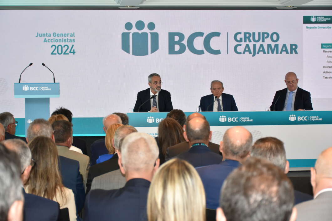 En total, la suma de estos dos impactos representa en 2023 una aportación a la economía valenciana por parte de la banca cooperativa Cajamar de 3.215,4 millones de euros en rentas y de 50.147 puestos de trabajo, según se detalla en El informe Impacto Económico del Grupo Cooperativo Cajamar 2023, elaborado por el Ivie. Estos datos han sido dados a conocer por Luis Rodríguez, presidente del Banco de Crédito Social Cooperativo, entidad cabecera del Grupo Cajamar, en la Junta General de Accionistas celebrada hoy, en la que ha sido aprobado el informe de gestión y las cuentas anuales de 2023.